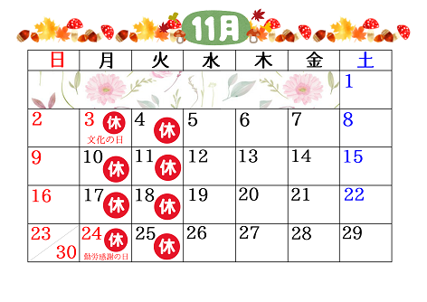 11月も美容室プラザをどうぞよろしくお願いいたします。