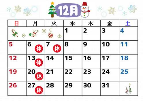 12月は各店舗営業スケジュールが異なりますので、ご注意ください。